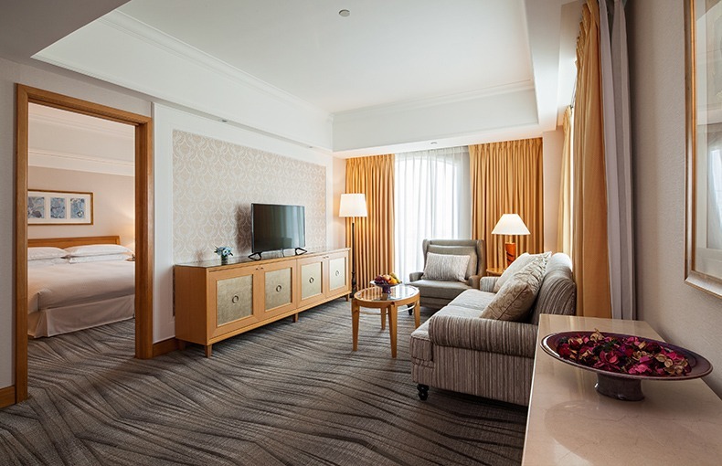 エグゼクティブスイートルームは貴方様にアットホームな居心地をお届けします。リビングルームとベッドルームを完全に区切り、内と外を分けた一つの活動領域をご提供します。垂直両面のピクチャーウィンドウのデザインで、部屋がより明るく、視野が更に人の心を和ませます。加えて、ゲスト用とメイン用の乾湿分離バスルーム設備をご用意し、お客様に便利で最上の待遇をお届けします。